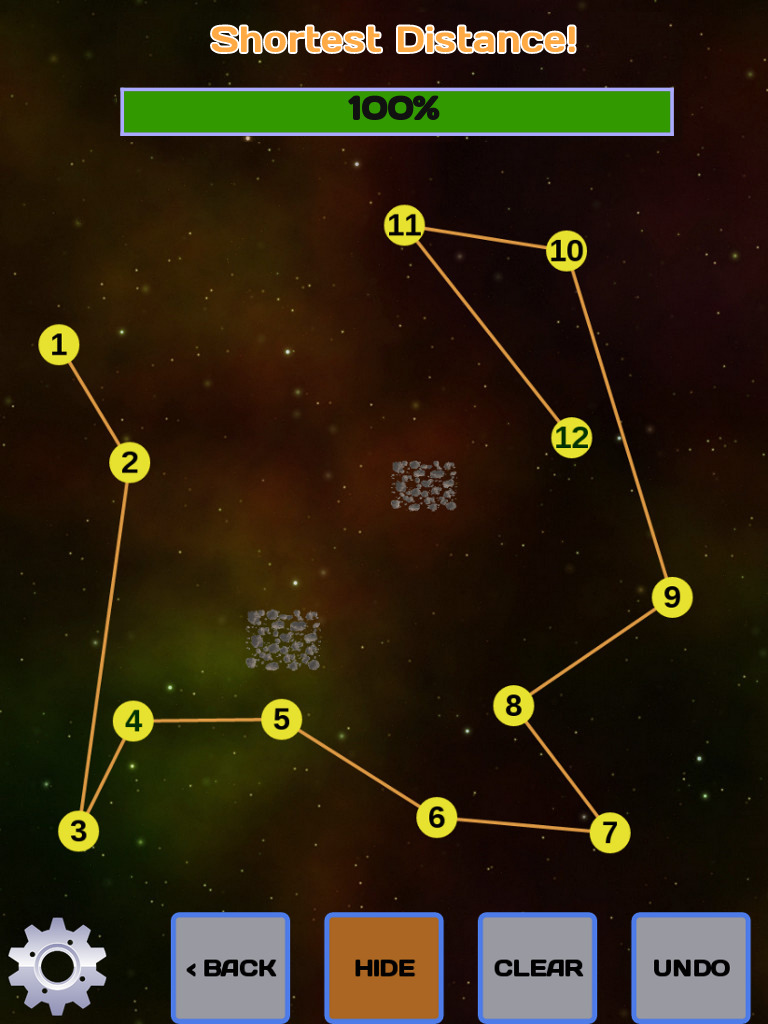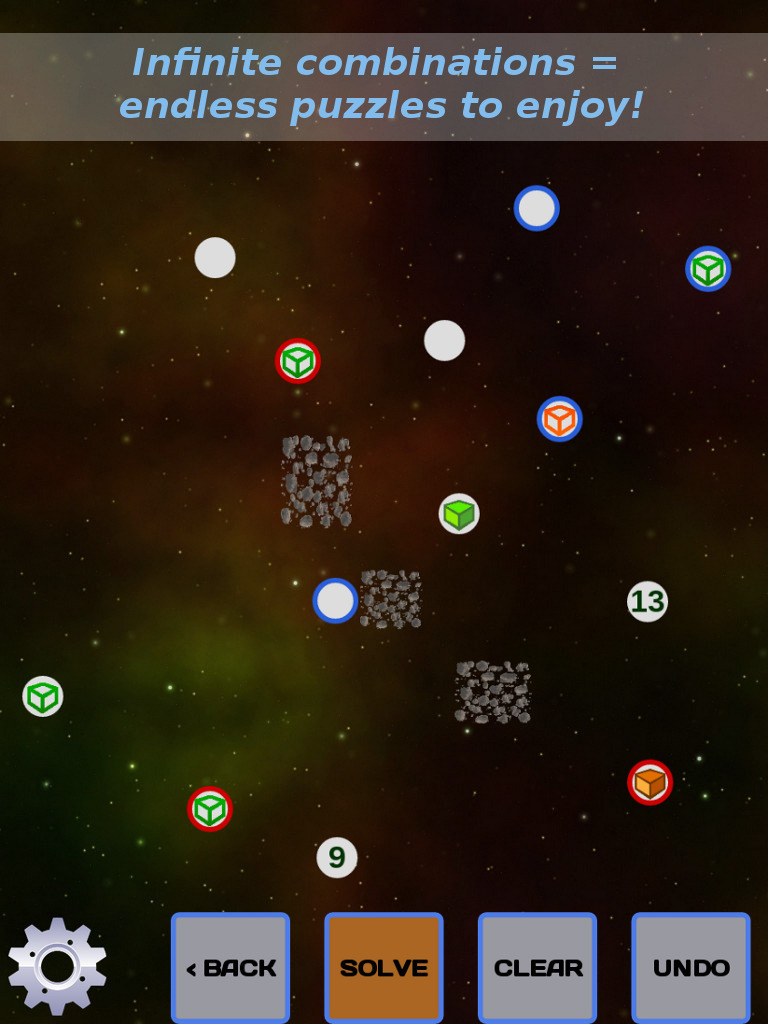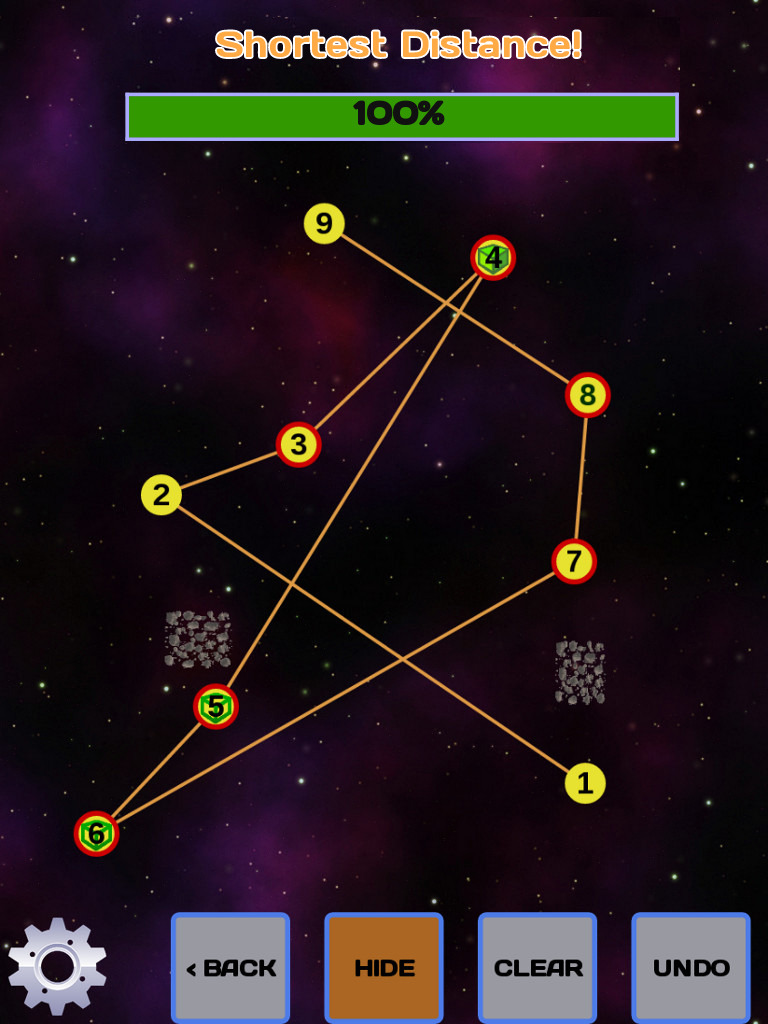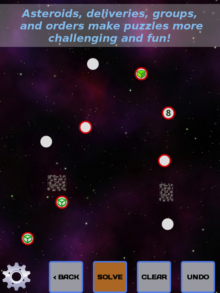 Description Galactic Postman is a puzzle game where the goal is to visit each planet in the shortest distance possible. There are two modes of play: Additionally, purchasing the full version of the game gives you access to the "Puzzle Editor" for unlimited practice and designing your own puzzles. === PUZZLE BASICS === A puzzle consists of planets and obstacles, plus restrictions that increase difficulty. To solve a puzzle, touch or swipe each planet in the order you think makes the shortest path. Objects like asteroid fields will block paths between planets so you will need to find a way around. A score of 90% or better will get you to the next level. === ORDERS === Orders are planets that already have a number on them, and they must be visited in that order in the sequence. For example, if a planet has a number "4" on it, it must be visited fourth in the sequence. Puzzles can have multiple Orders and they can appear anywhere in the sequence. === GROUPS === Groups are planets with similar colored borders that all must be visited together in sequence. For example, if three planets each have a red halo border around them, they must be visited each together sequentially. A Group can be completed at the start, middle, or end of the sequence. Puzzles can have multiple groups of different colors, and each Group is treated as separate. === DELIVERIES === Deliveries require that a package is picked up at one planet (solid color cube) and delivered to other planets in need of that package (hollow cube of matching color). For example, there are three planets with orange cubes on them. One of them is a solid orange cube and the other two are hollow orange cubes. The planet with the solid cube must be visited first before visiting the other two hollow cubes. Deliveries can be made in any order in the sequence and do not have to be done together as a group, so long as the solid cube of the appropriate color is picked up first. Puzzles can have multiple sets of Deliveries with different colors and each are treated separately. However, one set of Deliveries need not be finished before starting another set of Deliveries; they can be done in any mixed order so long as the appropriate solid colored cube is picked up first. === PUZZLE ADVENTURE === Puzzle Adventure consists of collections of hand-picked puzzles that will get more difficult as you progress. Each galaxy consists of 20 puzzles to solve in order to unlock the next galaxy. Get a score of 90% of better to clear each puzzle. To get the maximum 4-star rating for a puzzle, a near perfect solution must be achieved. Each time a puzzle is restarted, it may be rotated at random to make it more challenging. New sets of puzzles may be added on future game updates. === ARCADE MODE === Arcade Mode lets you test your skills against the clock and against other players. Go for high score by solving puzzles as fast and accurately as possible. Scoring is based on three factors: * Time Bonus: Finish before the timer runs out for up to a 10x bonus multiplier. * Accuracy Bonus: Score more points by getting close to the best solution. A perfect solution will get you an extra 2x bonus multiplier. * Difficulty Bonus: Each level you progress scores more points. Puzzles will get more difficult as you progress. Game ends when a solution fails with a score of less than 90%. See your standing against other players on the Arcade Leaderboard! === PUZZLE EDITOR === Purchasing the full game gives you access to the Puzzle Editor! Practice with randomly generated puzzles or design your own. After selecting the initial puzzle configuration, edit the puzzle by clicking the "Edit" button. Use the edit buttons to move objects and change Orders, Groups and Deliveries on any planet. Click "Done" after editing the puzzle and wait for the best solution to be calculate (this may take a few seconds). If you design an interesting puzzle, click the "Submit" button and we may use your puzzle in a future Puzzle Adventure galaxy! |